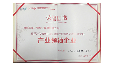 天麥生物被評為“2019中日先進醫(yī)療與新藥研發(fā)高峰論壇”產(chǎn)業(yè)領(lǐng)袖企業(yè)。